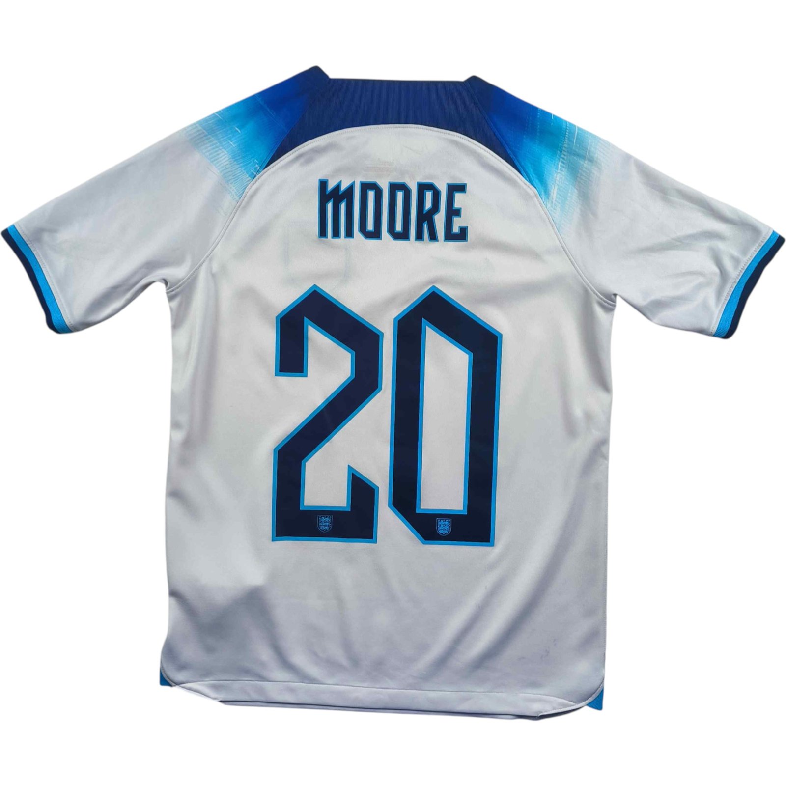 Anglia Angol válogatott 2022-23 Nike hazai „Moore” foci mez gyerek 147-158-as