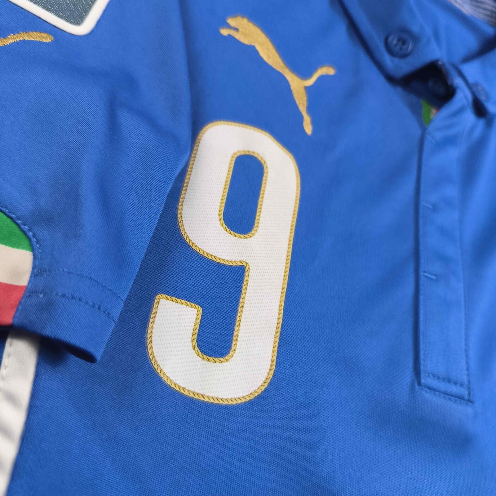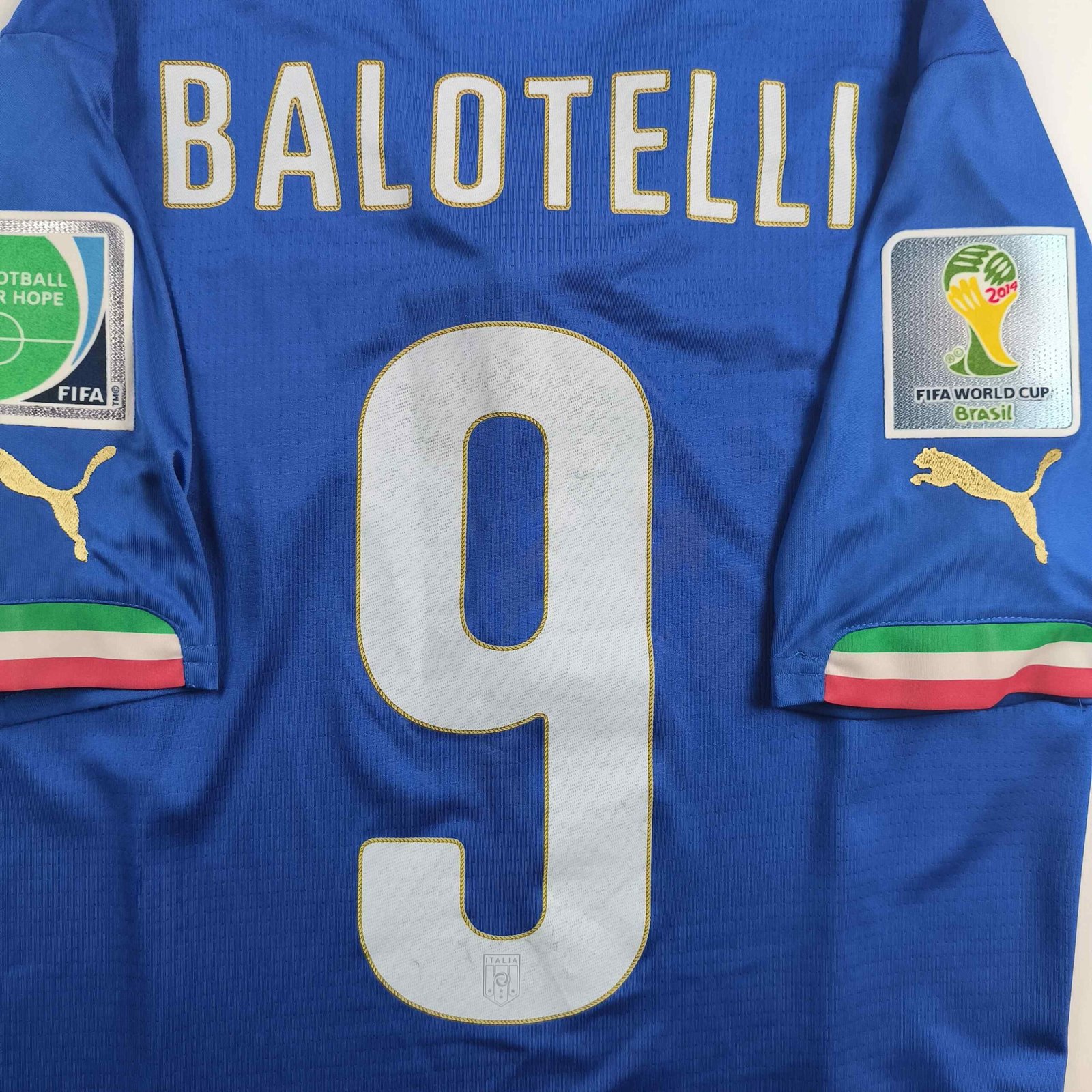 Olaszország Olasz válogatott 2014-16 Puma hazai Mario Balotelli foci mez S-es